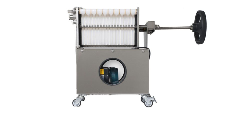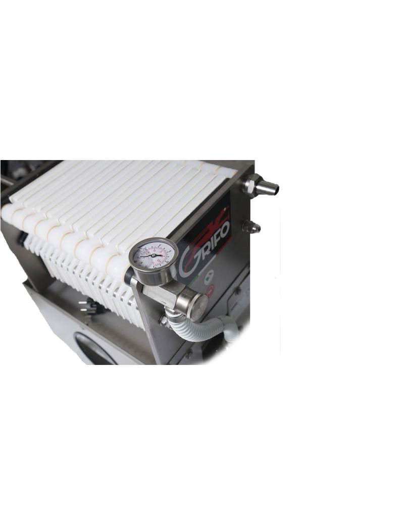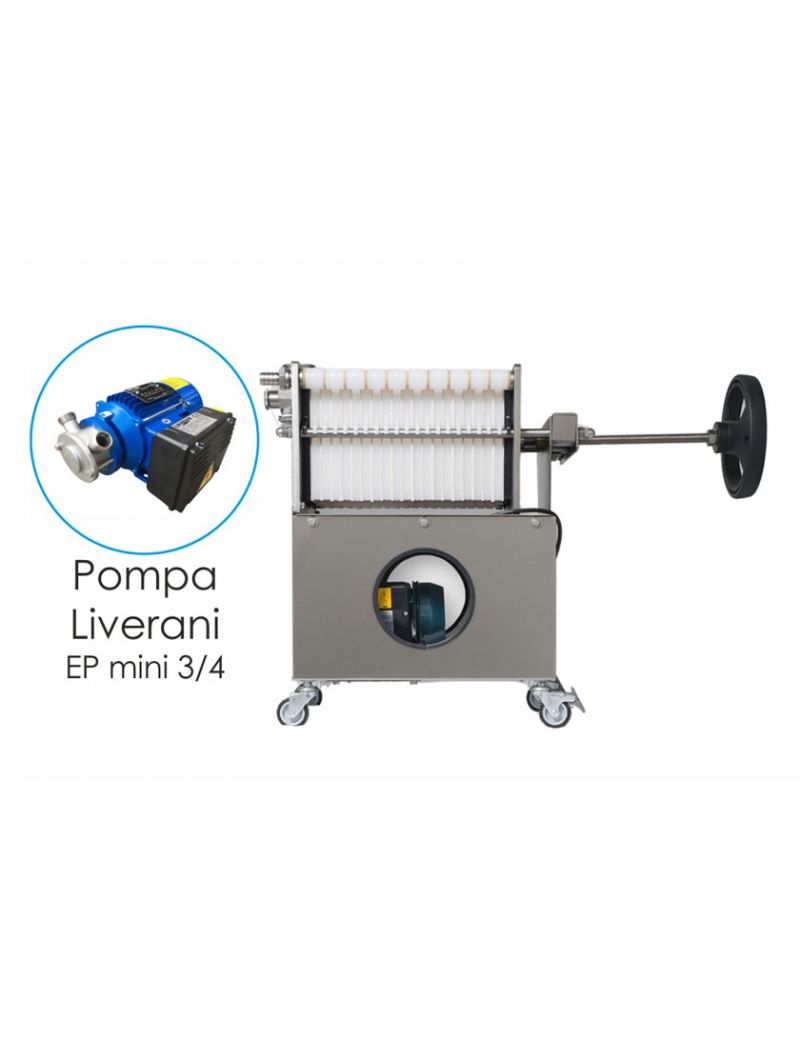 Si presenta con pompa e struttura completamente in acciaio Inox, elemento imprescindibile per igienicità e durata, e con piastre in nylon lineare tra le quali vengono inseriti gli strati filtranti.